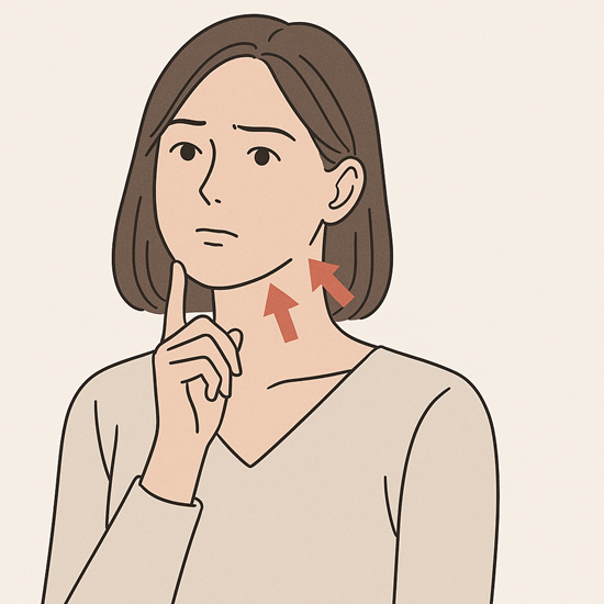 2) 턱의 옆면(광대 밑~턱선 중간쯤)을 손가락으로 눌러보기