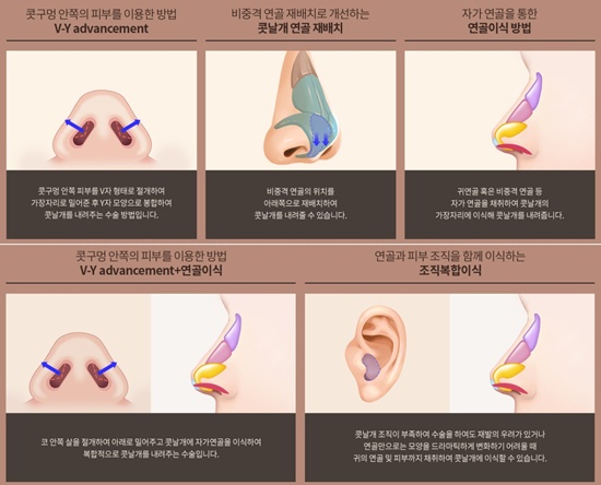 직접적인 교정은 콧날개내리기로 가능합니다.
