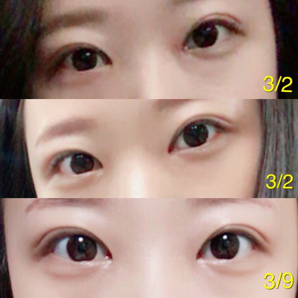 二重半切開、目元矯正、目元脂肪再配置、目の下が切れる手術後のレビュ...