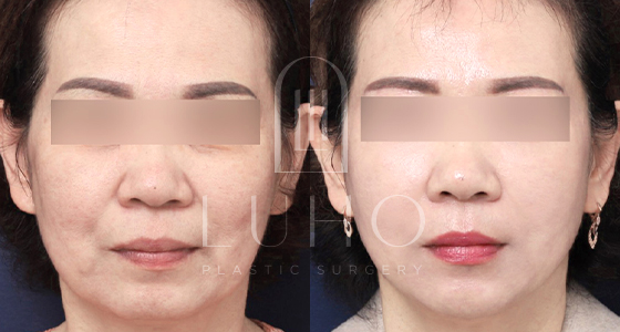 50대 환자분으로 스마트 V-리프팅후 일주일 경과하신 분 입니다. 처져 보이던 턱라인이 당겨지면서 V-라인으로 바뀌셨습니다.