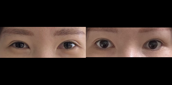 현재는 삐뚤었던 쌍커풀 라인이 훨씬 깔끔하게 정리되었고 눈매교정과 안검내반도 추가로 수술 받으면서 많이 좋아진 상태입니다